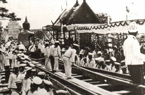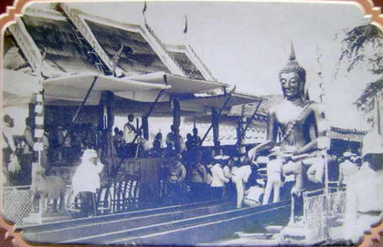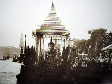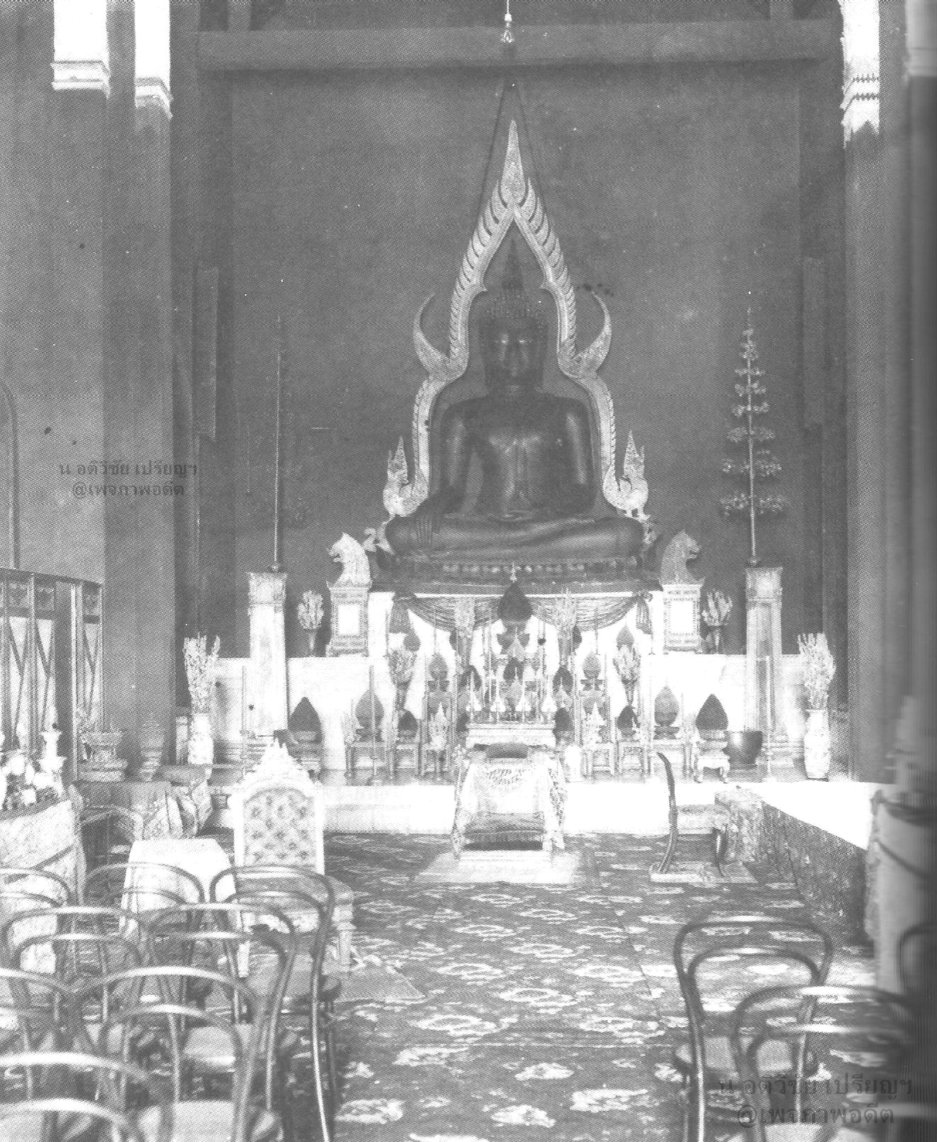 แล้วเสด็จพระราชดำเนินทรงเททองหล่อเป็นส่วนๆ เมื่อวันที่ 20 ตุลาคม พ.ศ. 2444 อัญเชิญล่องเรือมาคุมองค์และแต่งที่กรมทหารเรือ โดยพระยาชลยุทธโยธิน (Andre du Plessis de Richelieu) ชาวเดนมาร์ก เข้ามารับราชการเป็นทหารเรือ มียศเป็นพลเรือโท ตำแหน่งผู้บัญชาการกรมทหารเรือ เป็นผู้ควบคุมการแต่งองค์พระ เสร็จแล้วเชิญลงเรือมณฑปแห่ไปประดิษฐานเป็นพระประธานในพระอุโบสถวัดเบญจมบพิตร เมื่อวันที่ 13 ธันวาคม ปีเดียวกัน