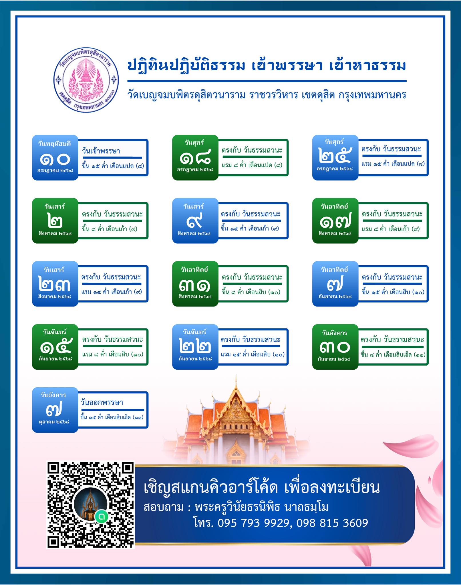 ❖ ปฏิทินปฏิบัติธรรม เข้าพรรษา เข้าหาธรรม ❖